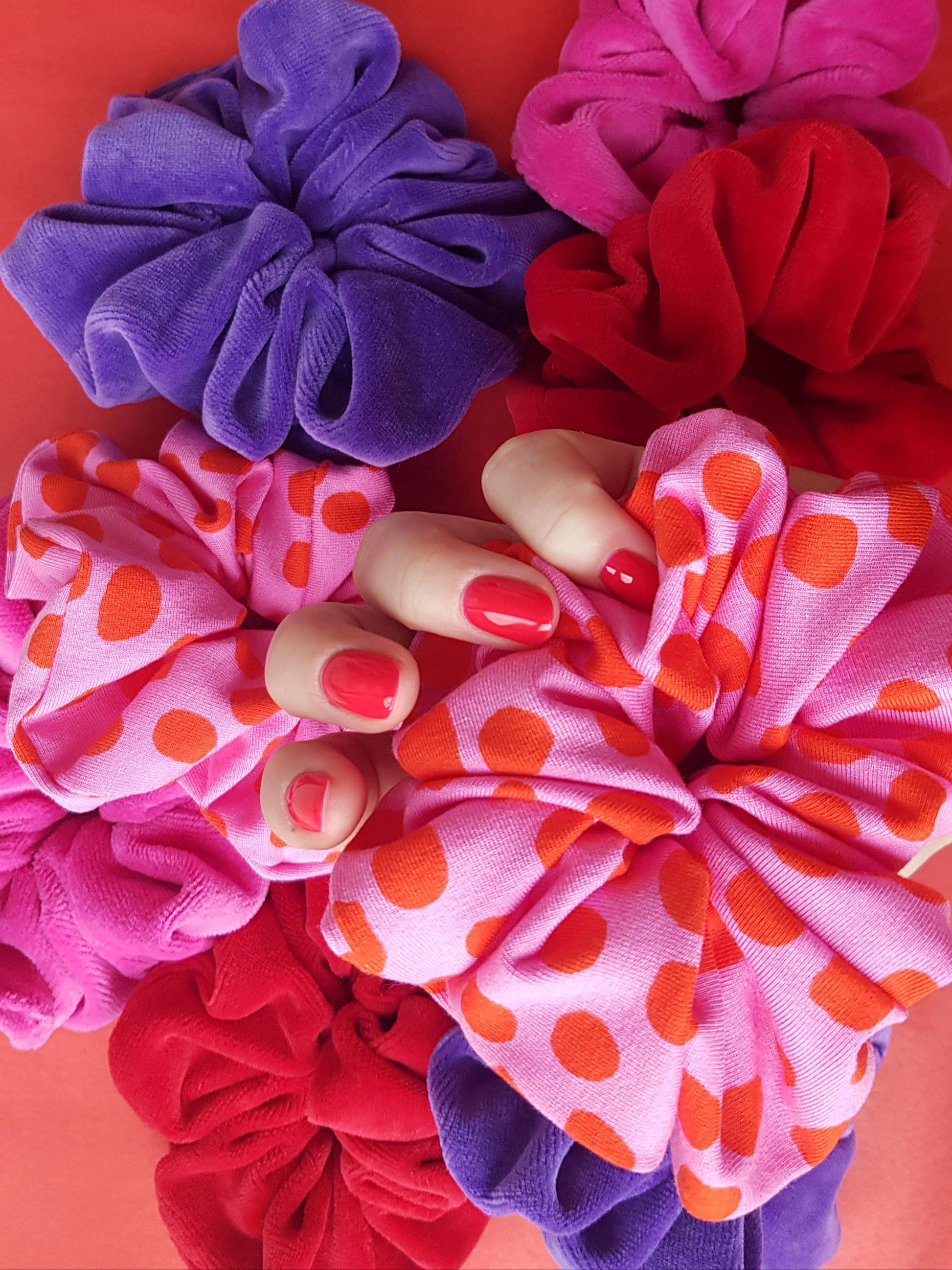 Miękka gumka do włosów typu scrunchie wykonana z muślinu bawełnianego. Występuje w dwóch wersjach kolorystycznych: dwukolorowa różowo-dyniowa oraz trzykolorowa uzupełniona czarno-białym printem. Delikatna dla włosów. Idealna dla dzieci i dorosłych.
