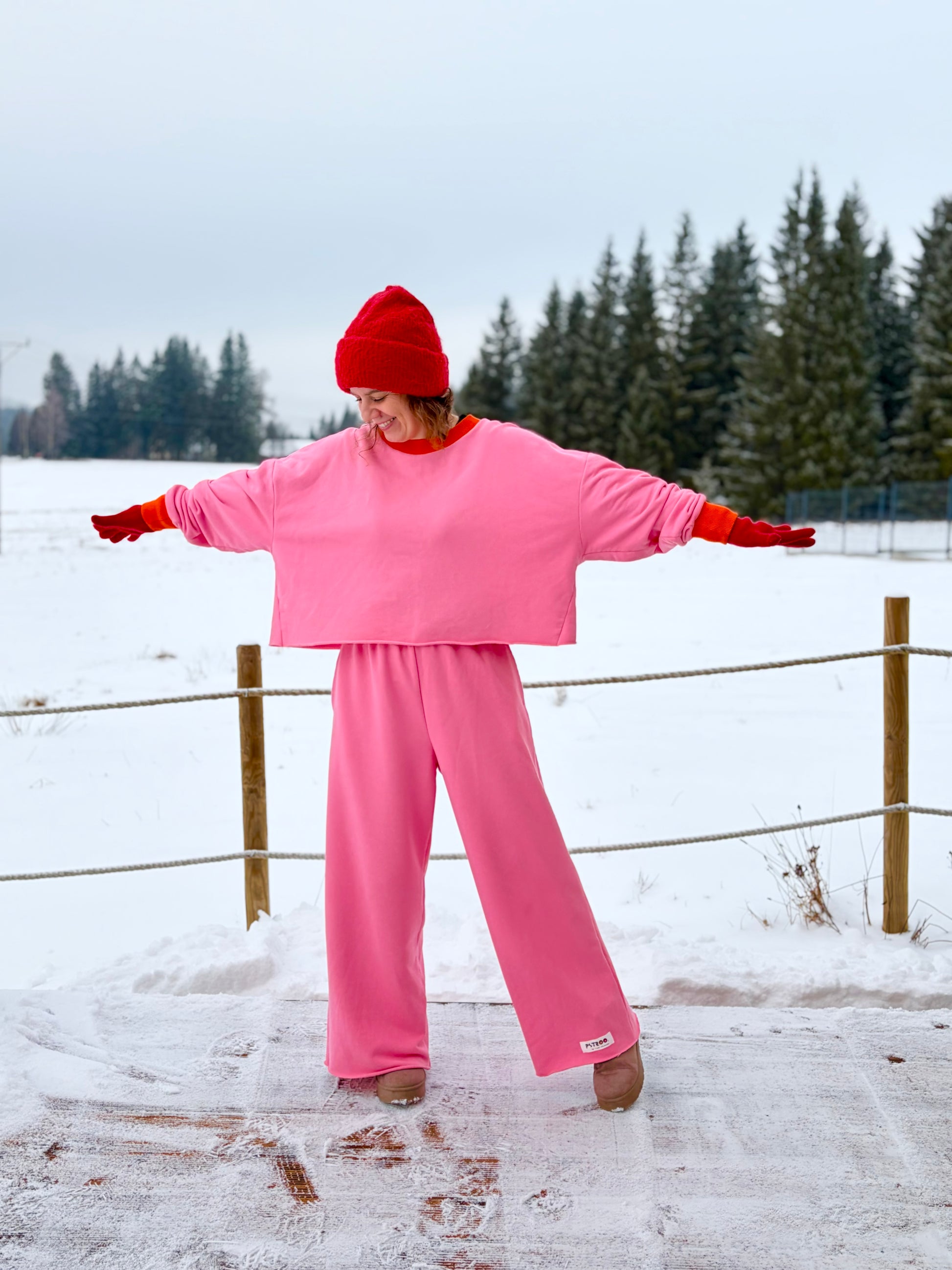 Różowe spodnie dresowe YOKOO to idealny wybór na najbliższy sezon. Uszyte z przyjemnej, wysokiej jakości dresówki z pętelką w kolorze różowym. Cudownie wygodne, o swobodnym kroju z kieszeniami i szeroką gumką w talii. Podobnie jak w dół bluzy YOKOO, nogawki spodni posiadają surowe wykończenie.
